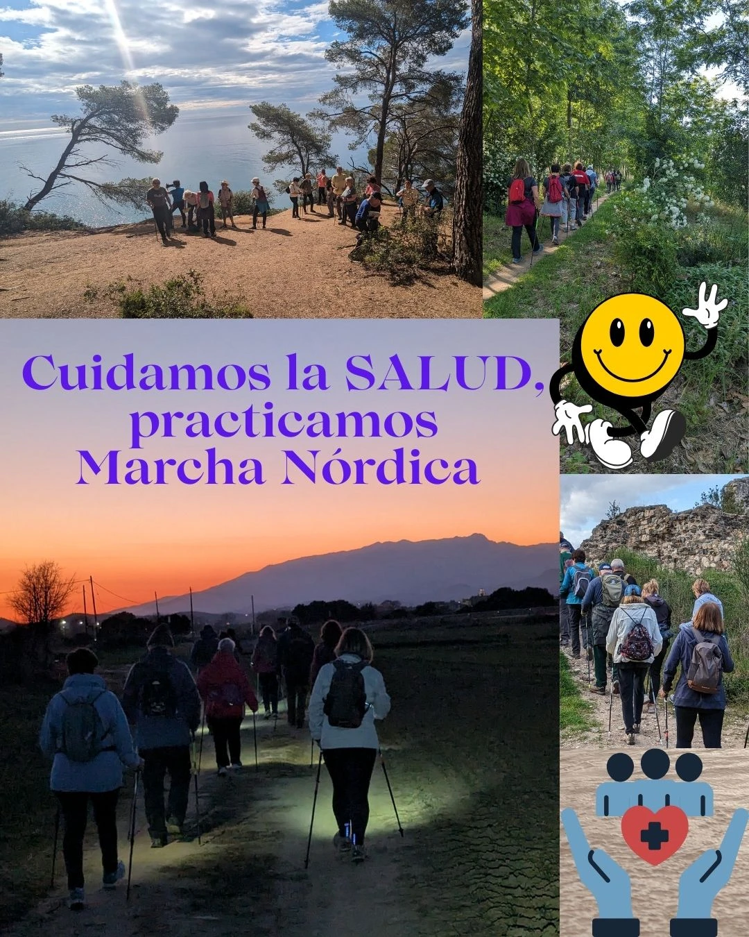 La OMS (Organización Mundial de la Salud) recomienda la práctica de actividad física durante al menos 30 minutos diarios. El Nordic Wlking es muy beneficioso y nos ayuda a conseguirlo, pués nuestras sesiones tienen una duración de como mínimo 1 hora y 45 minutos sin sobrecargar el cuerpo. Lo practicamos al aire libre y en grupo, lo cual facilita la socialización, y nos aporta bienestar tanto físico, como psíquico y social, que representa la definición de SALUD según la OMS.